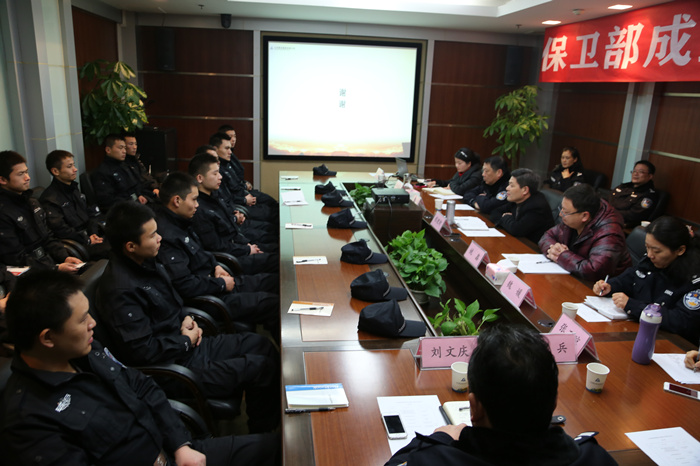 首先,孙宝环经理宣读了《关于成立保卫部的决定》、《关于徐刚等同志职务聘任的决定》两份文件,黎乐主任介绍了山河集团的发展情况。随后,董事长程理财介绍了保卫部成立的背景和主要职责,并对保卫部员工提出了两点要求:一是要勤锻炼、勤学习,二是要爱岗敬业,防患于未然,疏理、化解矛盾;同时要制订好职业生涯规划,选择好未来的职业发展方向,在山河的平台上成长成才。