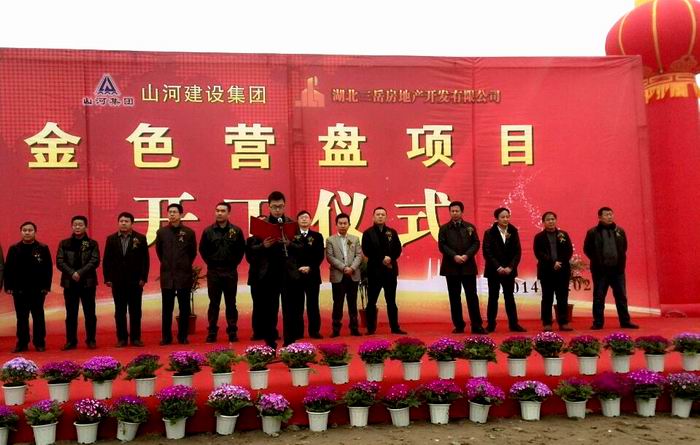 集团地产事业部副总经理、益鹏置业总经理姜薛在开工仪式上致辞,他说,中国建筑业50强、中国民营企业500强的山河集团是集建筑产业、房地产业、投融资业务于一体的综合性企业集团。作为本项目的投资商,山河集团有着雄厚的资本和丰富的项目运营经验;作为本项目的建设商,山河集团有着过硬的专业能力。能够投资及兴建金色营盘项目,深感责任之重大。同时,对各级领导和各界人士的信任和支持表示由衷的感谢。