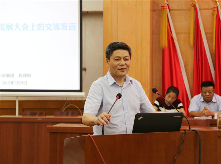 山河集团董事长程理财在会上作交流发言。在介绍了山河集团近年来的发展情况后,他结合自身在建筑行业30余年的经验,深入分析了新常态下建筑业面临的发展机遇与挑战。程董事长指出,机会是留给有准备的人,高度市场化的竞争方式对弱者意味着危机,对强者意味着机遇。他结合当前的市场环境、管理经验、发展趋势分析了建筑业的“危与机”,并列出建筑企业目前面临的九个“生死”关键。在对建筑业发展的思考中,他强调两大要素,一是“守正”,二是“规模加创新”。他从品牌、团队、融资、大市场、大客户五个方面对如何做大规模做了深入剖析;结合丰富案例分享了“细节、战略、产业、模式、平台”如何决定企业成败,强调发展要创新、要找准定位,企业应结合自身情况走差异化的道路。最后,他表示,希望在各级党委、政府的指导下,在行业主管部门的推动下,在座的团风企业家能够整合优势、合作共赢,合力推进团风建筑业实现转型升级发展。