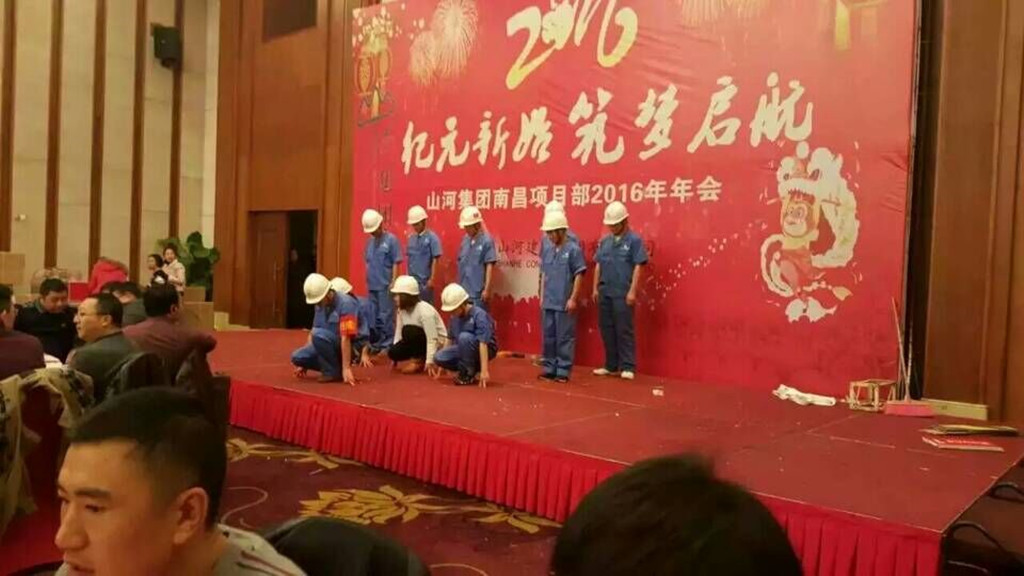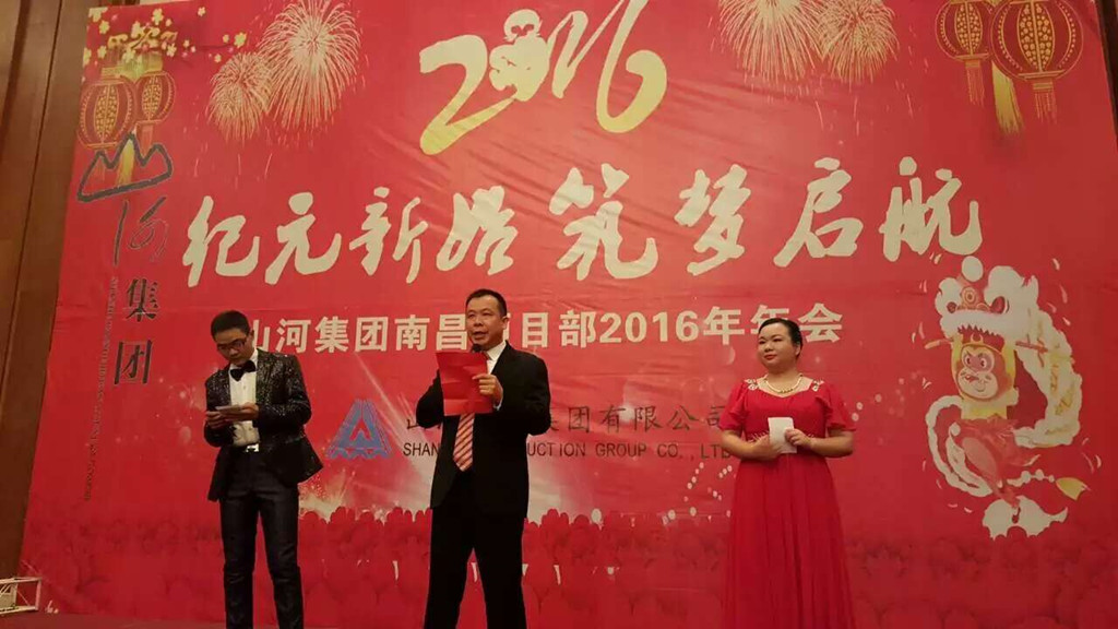 2016年1月16日,格兰云天大酒店现场彩灯闪烁,座无虚席。山河集团南昌项目部在这里隆重举行了以“纪元新始 筑梦启航”为主题的年会。湖北公司副总经理左根生、项目部全体员工及嘉宾共计240余人齐聚一堂,共飨盛典。