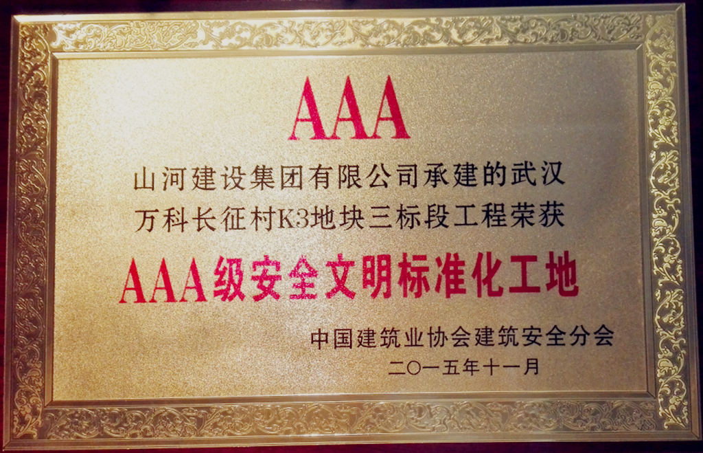 3月2日,武汉市建筑安全管理协会召开了第二届二次理事大会暨会员大会。山河集团荣获“2015年度武汉市建筑施工安全标准化示范企业”称号,承建的万科长征村K3地块项目荣获全国“AAA级安全文明标准工地”称号。