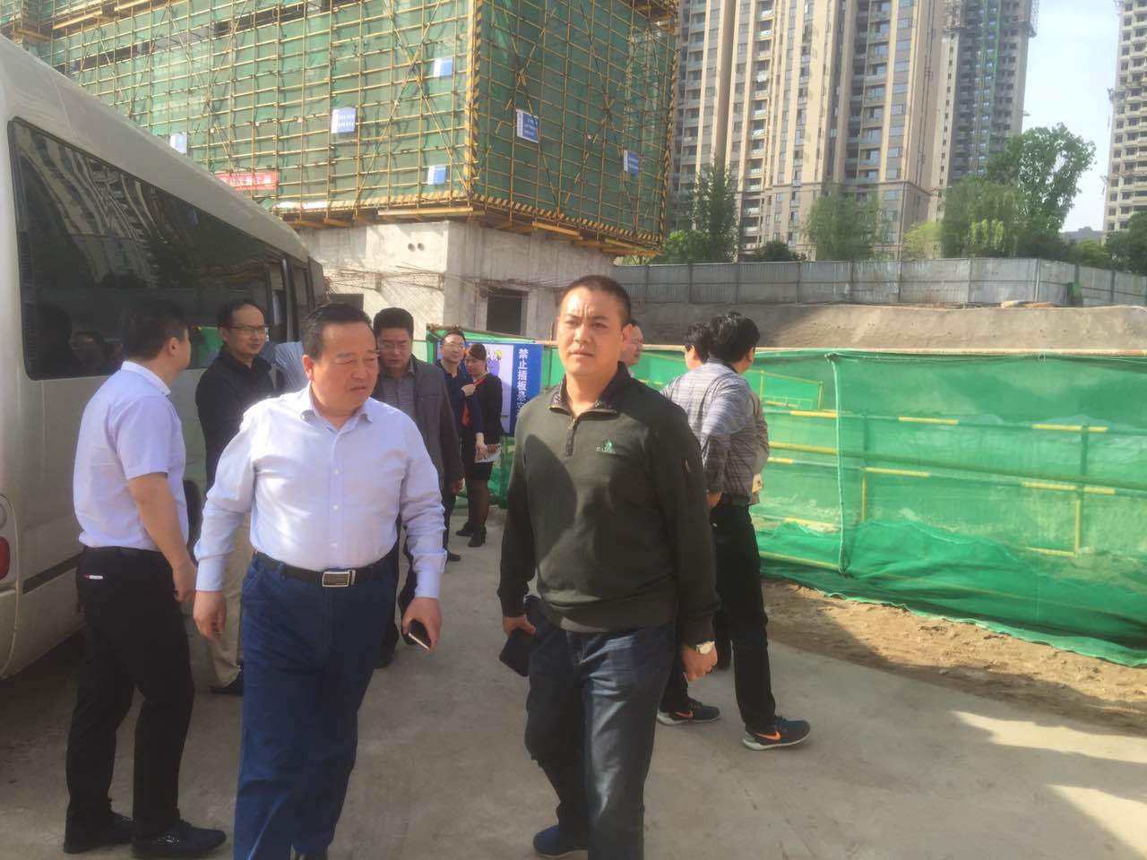 在恒大名都三期项目生产经理候术庚、技术总负责邓夕志及安全总负责王治华的陪同下,河南省委、平顶山市委一行领导重点检查了该项目的施工质量,并针对现场的脚手架、模板支撑系统、现场文明施工以及夏季防汛、防雷、防暑降温等工作提出了宝贵的指导意见。
