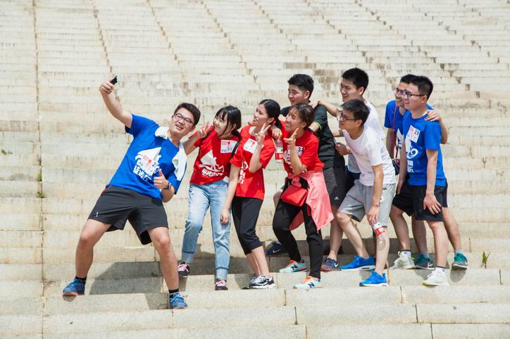 赛前的鼓舞人心。在偌大的座山下面,每个人都各司其职,综合办公室和其他部门一些同事们在发放食物,水,以及每个人身上的参赛号码,细致耐心的为大家服务着。随后,在绚烂的阳光和蓝蓝的天空下,鼓舞人心的话语,响彻在我们每个人的耳边。集团公司张总手拿着话筒,给我们讲解了注意事项和比赛规则,董事长以及各位领导上台讲话,更多的是在鼓励我们,鼓励我们团结不放弃。接着,随着一声鸣枪,赛前的帷幕就这样拉开了,大家欢呼着,激动地冲了出去。