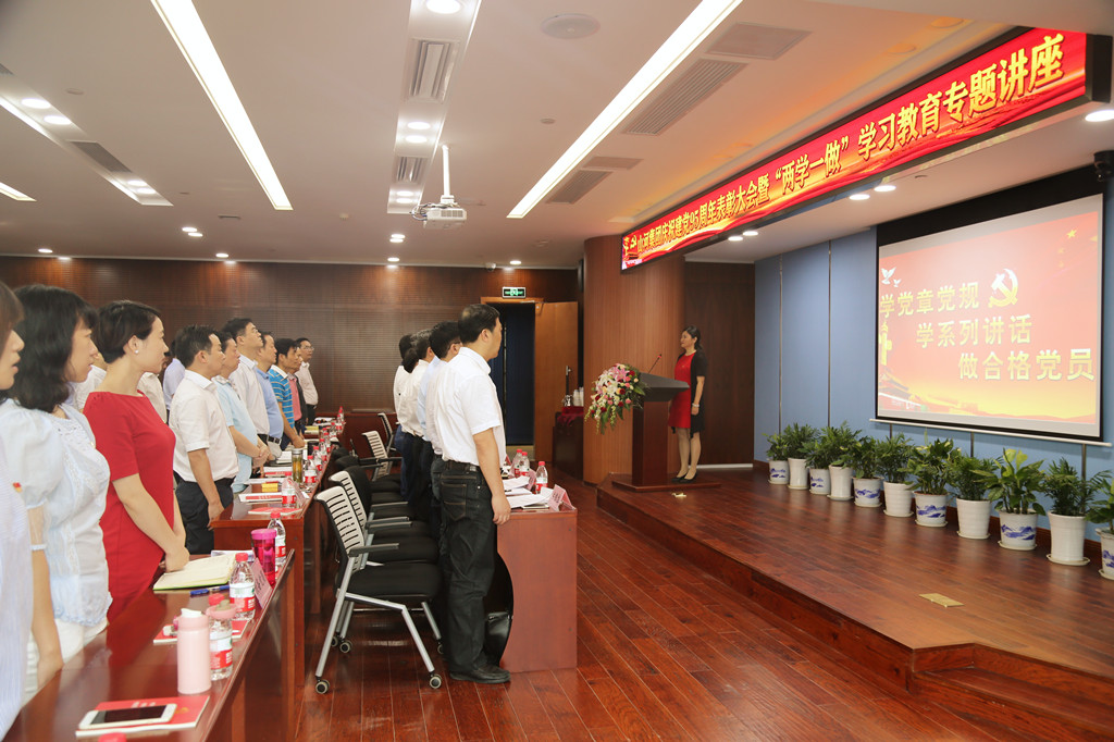最后,集团公司董事长、党委委员程理财带领与会人员回顾了建党95年的发展历程,与大家分享了学习党课的体会。他表示,作为一名老党员,自己将带头践行“两学一做” 学习教育,脚踏实地做合格党员。他在讲话中要求,全体党员要“平常时候看得出来、关键时刻站得出来、危急关头豁得出来”,为自己、为企业、为社会努力工作。