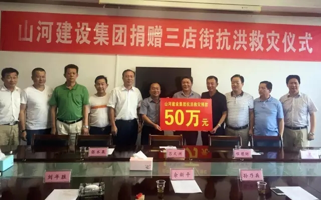 8月3日上午9时,在细雨轻风中,山河集团董事长程理财,集团党委委员、湖北公司执行总经理许金华,党委委员、山河装饰公司董事长余新平,党委委员、新地标房地产董事长徐友明及部分项目经理一行,轻车简行前往新洲区捐款50万元支持灾后重建。
