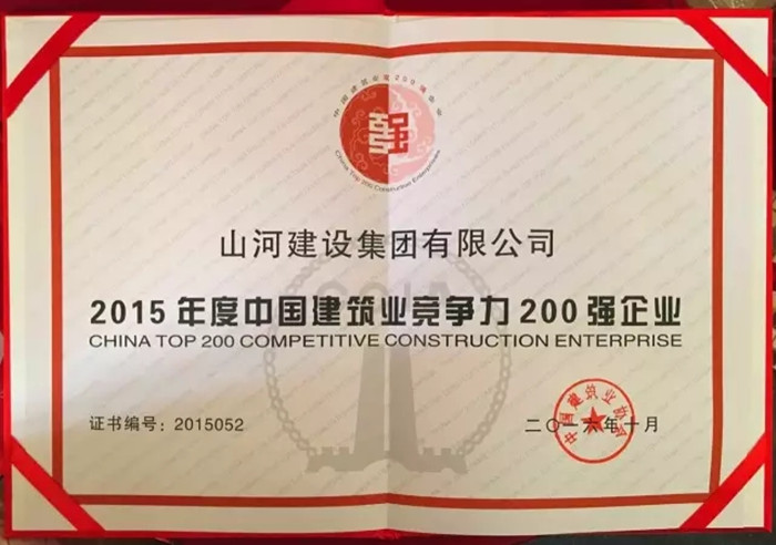 12月8日,中建协在广西南宁发布2015年度中国建筑业竞争力200强企业,山河集团在榜单中排名52位。