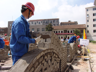 6月17日,市建设学校操场红旗招展,彩带飞扬。我市建筑业“山河杯”首届职业技能大赛在这里隆重举行。这是全市建筑装饰行业今年围绕市场经济技术创新活动开展的一场重头戏,是一次互相交流技术,取长补短的盛会;也是迎接省、全国技能比武的选拔赛,目的是为了提高建筑装饰行业职工整体素质,突出技术创新,增强广大职工的竞争能力和创造能力。这次职工技能大比武,体现了友谊第一,比赛第二的原则。赛出了风格,赛出了水平,取得了圆满成功。
