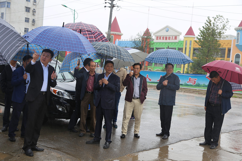 山河集团董事长程理财率领集团高管团队一行与团风县委常委、县委办主任丁永忠等领导实地察看了EPC项目的六个子项目所在地。