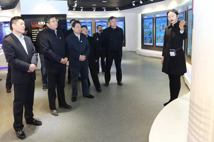 考察团一行参观了企展中心,了解山河集团的发展历程、业务范畴和企业经营等情况。