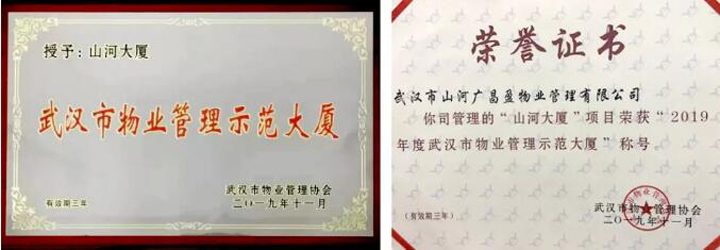 山河大厦荣获“2019年度武汉市物业管理示范大厦”称号