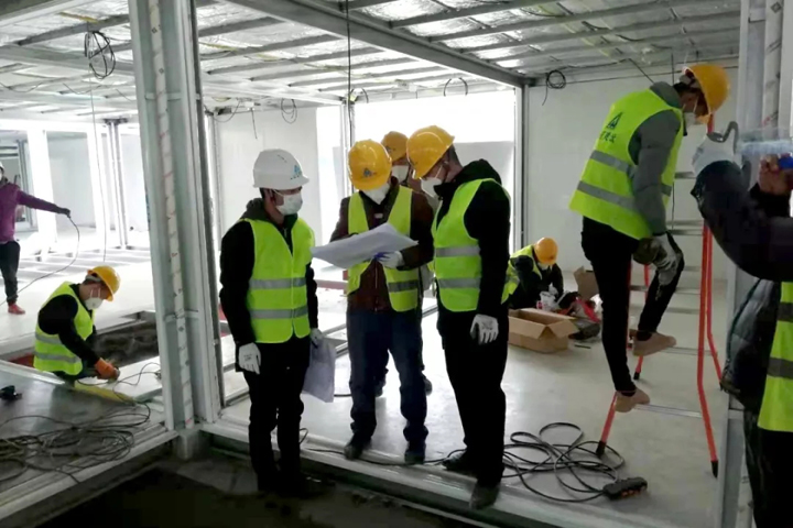 2月2日,武汉雷神山医院建设项目指挥部发来紧急任务:需要支援安装雷神山医院“医疗隔离区”集装箱隔断工人。山河集团接到消息后,火速集结人力和物资,20余名管理人员和专业技术工人立即奔赴雷神山。