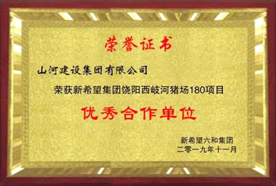 山河集团过硬的工程质量,优秀的履约能力,得到了业主单位的高度肯定,被新希望集团授予“优秀合作单位”称号。