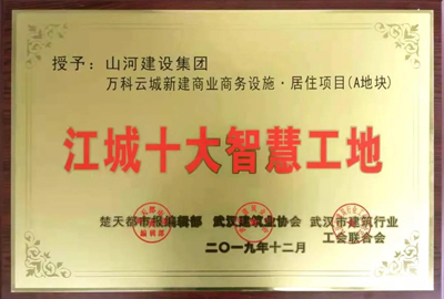 12月29日,2019年江城“双十大”工地选树活动颁奖典礼举行。山河建设集团项目管理公司承建的万科云城新建商业商务设施、居住项目(A地块)荣获“江城十大智慧工地”荣誉称号。