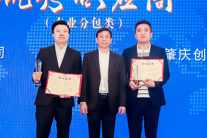 ▲常务副总经理刘永国为优秀供应商(专业分包类)颁奖