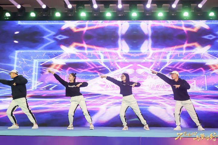 现场齐声倒计时过后,伴随着动人的音乐声,寄托着深深祝福的开场舞《筑梦》拉开了年会的序幕。