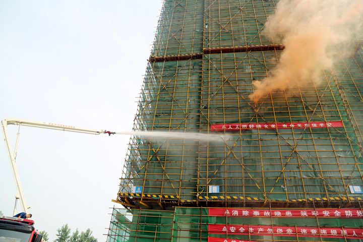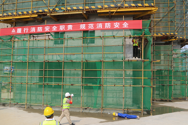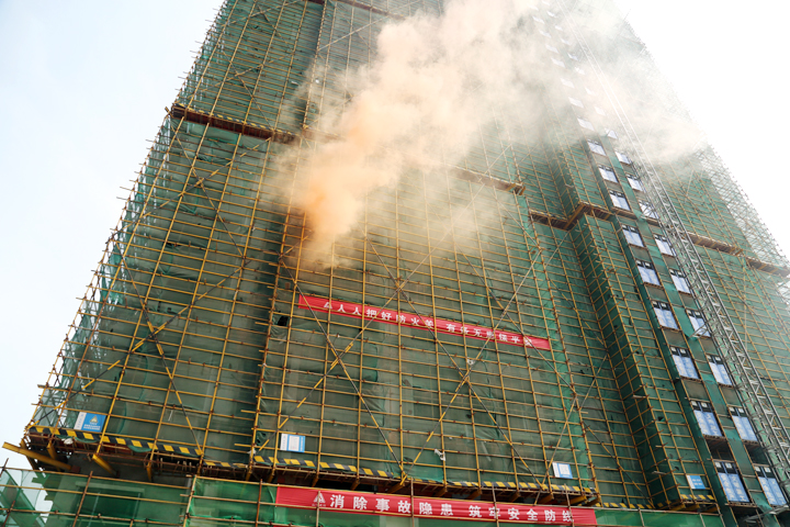 “失火了!”一声尖锐急迫的叫喊声,打破了工地的宁静。随着消防烟雾弹的开启,在建大楼顿时浓烟滚滚,“火势”迅速向四周蔓延。