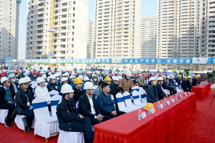 11月6日,晴空万里,艳阳高照,山河建设集团江苏公司承建的徐州美的东湖天城二期一标段施工现场人头攒动,江苏公司和美的置业联合举办的质量安全标准化大型观摩会在这里盛大举行。