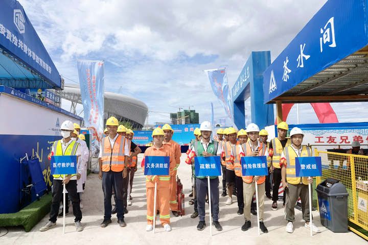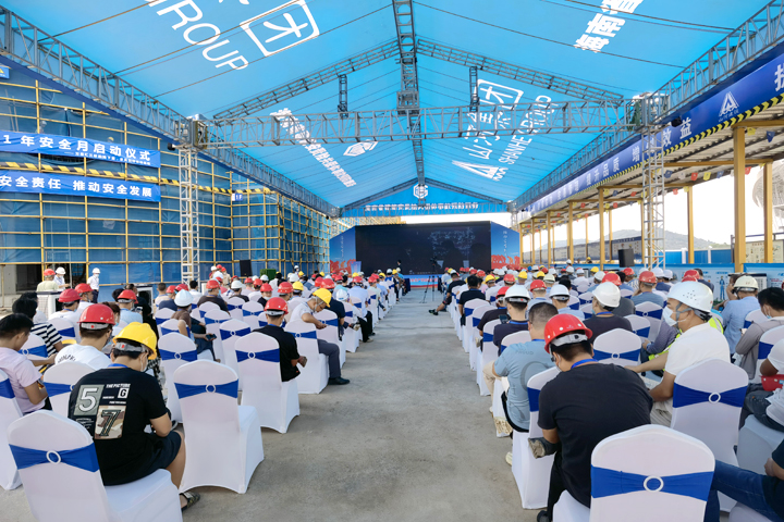 6月9日,山河建设集团海南公司承建的万宁红星美凯龙三标段项目施工现场人头攒动,万宁市2021年安全生产月启动仪式暨安全应急演练现场观摩会在这里举行。万宁市住房和城乡建设局局长陈云锋,建设工程质量安全监督站站长严云,安委办主任、应急管理局局长林靖等领导出席活动,海南公司常务副总经理程智、工程团队、项目管理人员及建设单位、监理单位、万宁市各在建项目代表等300余人参加了活动。