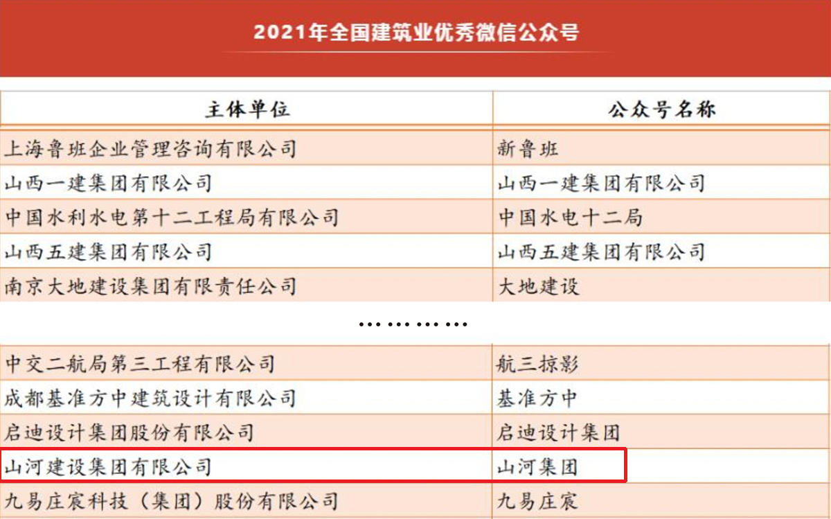 山河集团公众号再次获评“全国建筑业优秀微信公众号”