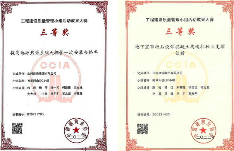 近日,中国建筑业协会公布了2022年度工程建设质量管理小组活动成果大赛获奖名单,山河建设集团申报的两项成果荣获三等奖。