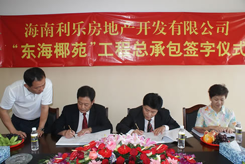 10月31日, 山河建设集团有限公司和海南利乐房地产开发有限公司在海口市半山花园海天商务楼举行“东海椰苑”项目签字仪式。